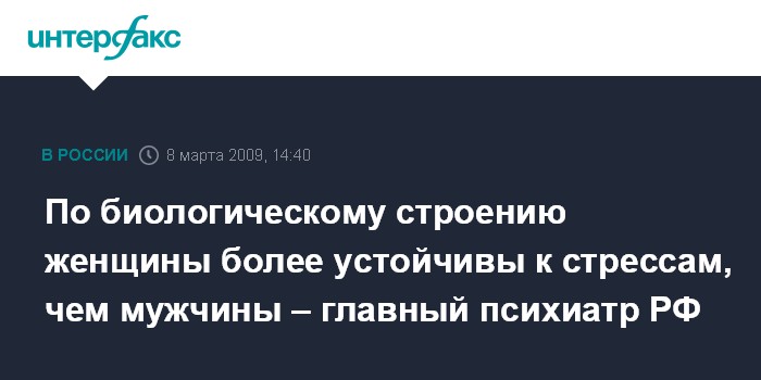 По биологическому строению женщины более устойчивы к стрессам, чем мужчины – главный психиатр РФ