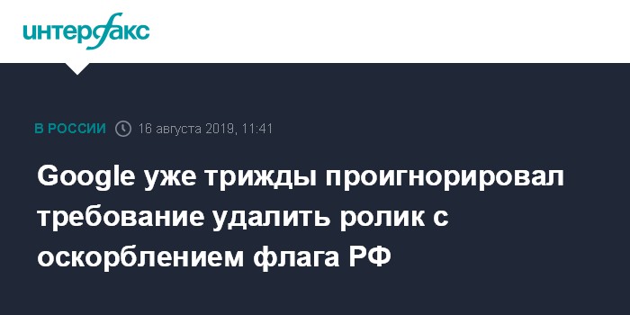 Google уже трижды проигнорировал требование удалить ролик с оскорблением флага РФ