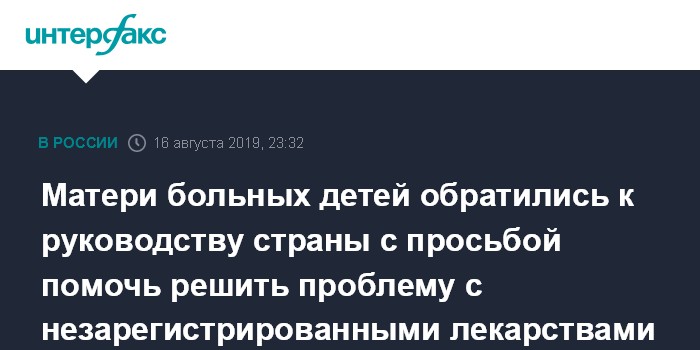 Москва. 16 августа. INTERFAX.RU - Матери больных детей обратились к руководству страны с просьбой помочь обеспечить детей противоэпилептическими препаратами, незарегистрированными в России.