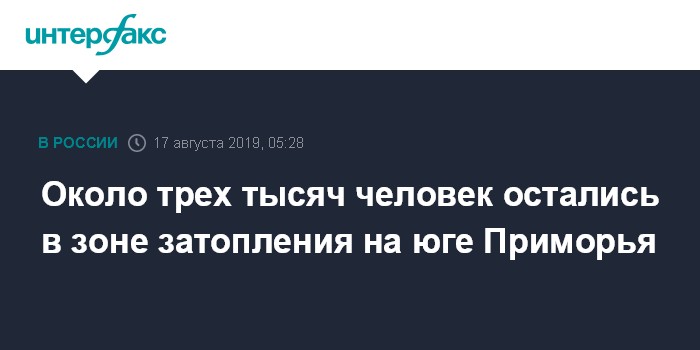 Москва. 17 августа. INTERFAX.RU - Около 3 тыс. жителей находятся в зоне подтопления в Уссурийском городском округе на юге Приморья, уровень воды в реках продолжает подниматься.