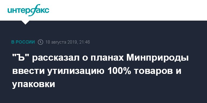"Ъ" рассказал о планах Минприроды ввести утилизацию 100% товаров и упаковки