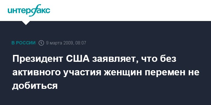 Президент США заявляет, что без активного участия женщин перемен не добиться