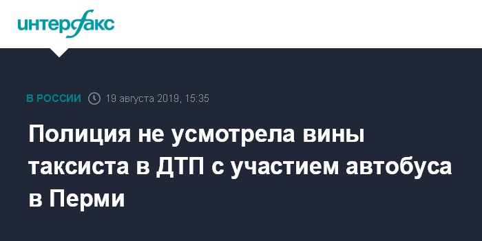 Москва. 19 августа. INTERFAX.RU - Следователи полиции не склоняются к версии о том, что таксист мог спровоцировать ДТП с участием автобуса в Перми, после которого один пассажир погиб и 35 человек оказались в больнице.