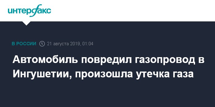 Москва. 21 августа. INTERFAX.RU - Автомобиль "Нива" в ночь со вторника на среду повредил газопровод в ингушском городе Карабулак и скрылся с места происшествия, сообщили агентству "Интерфакс" в мэрии города.