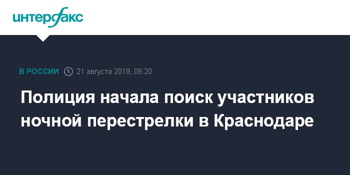 Москва. 21 августа. INTERFAX.RU - Полиция устанавливает участников перестрелки, произошедшей ночью на улице в Краснодаре, а также возможных пострадавших, сообщили "Интерфаксу" в среду в пресс-службе ГУ МВД России по Краснодарскому краю.