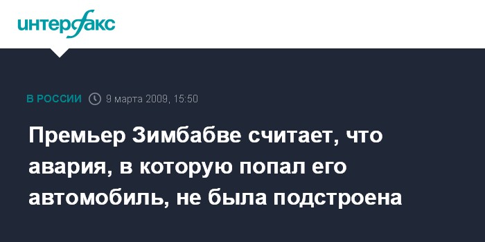 Сразу после ДТП с участием автомобиля премьера, произошедшего в минувшую пятницу, в стране появились слухи о том, что авария была умышленно подстроена, и это связано с политическим противостоянием М.Цвангираи и президента страны Роберта Мугабе.