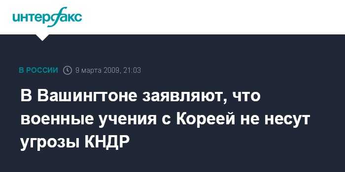Вашингтон. 9 марта. ИНТЕРФАКС - Военные учения, проводимые США совместно с Южной Кореей, не являются угрозой Северной Корее, заявил в понедельник на брифинге в госдепартаменте США и.о. пресс-секретаря ведомства Роберт Вуд.