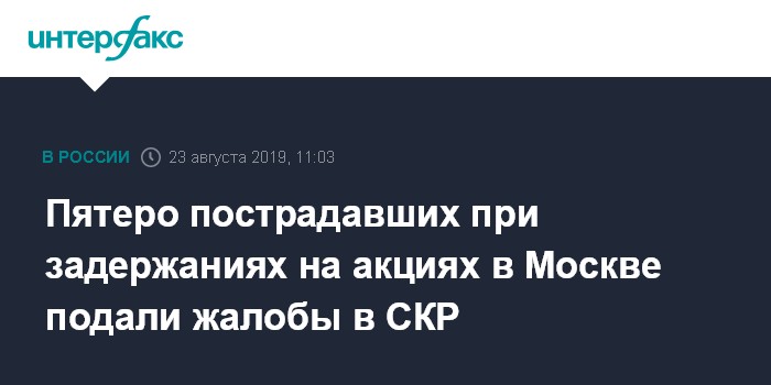Москва. 23 августа. INTERFAX.RU - Пятеро пострадавших при задержаниях во время митингов в Москве подали жалобы в Следственный комитет.