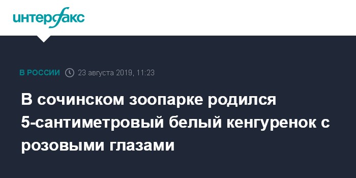 Москва. 23 августа. INTERFAX.RU - Белый кенгуренок появился на свет в зоопарке санатория "Октябрьский" в Сочи.