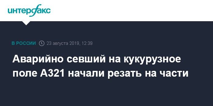 Аварийно севший на кукурузное поле А321 начали резать на части