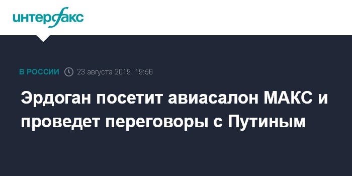 Пресс-секретарь президента РФ Дмитрий Песков в свою очередь пояснил, что Владимир Путин и Эрдоган 27 августа проведут переговоры на полях международного авиасалона МАКС.