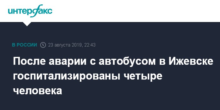 Москва. 23 августа. INTERFAX.RU - После аварии с автобусом в Ижевске в госпитализированы четыре человека в состоянии средней степени тяжести, сообщили агентству "Интерфакс" в пресс-службе Минздрава республики в пятницу.