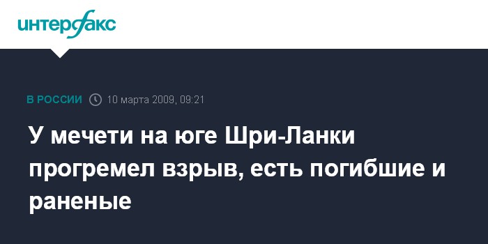 Москва. 10 марта. INTERFAX.RU - Не менее восьми человек погибли в понедельник во время мусульманской религиозной церемонии на юге Шри-Ланки, в числе 25 раненых оказался министр почт, сообщает сингапурский телеканал "Эйша 1".
