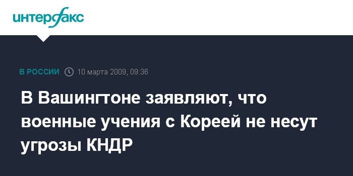 Москва. 10 марта. INTERFAX.RU - Военные учения, проводимые США совместно с Южной Кореей, не являются угрозой Северной Корее, заявил в понедельник на брифинге в госдепартаменте США и.о. пресс-секретаря ведомства Роберт Вуд.