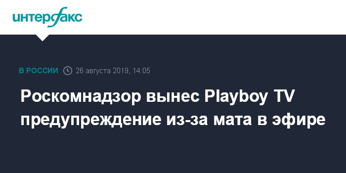 Москва. 26 августа. INTERFAX.RU - Роскомнадзор вынес предупреждение учредителю сетевого телеканала Playboy TV за нецензурную брань в эфире, сообщили в пресс-службе ведомства.