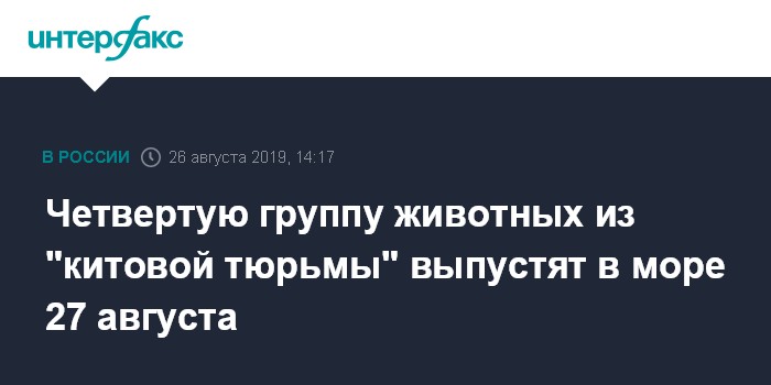 Четвертую группу животных из "китовой тюрьмы" выпустят в море 27 августа