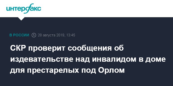 Москва. 28 августа. INTERFAX.RU - Следователи в Орловской области проводят проверку по сообщениям СМИ о нарушении прав инвалида в одном из домов-интернатов для престарелых. Об этом сообщает региональное следственное управление СКР 28 августа.