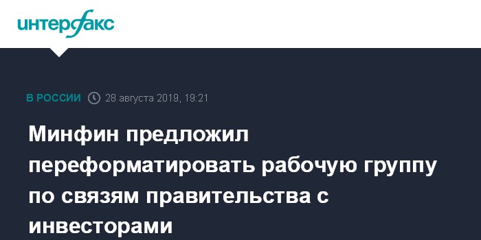 Минфин предложил переформатировать рабочую группу по связям правительства с инвесторами