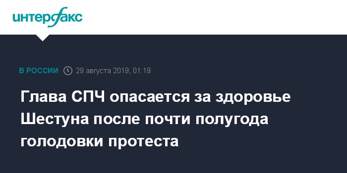 Москва. 29 августа. INTERFAX.RU - Председатель Совета при президенте РФ по правам человека Михаил Федотов посетил экс-главу Серпуховского района Подмосковья Александра Шестуна и заявил, что его здоровье вызывает опасения, хотя его голодовка больше не сухая.