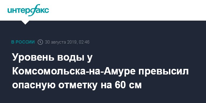 Москва. 30 августа. INTERFAX.RU - В Комсомольске-на-Амуре активизируются работы по наращиванию высоты защитных сооружений из-за нового прогноза гидрологов о повышении уровня воды в реке Амур до отметки более восьми метров, в пятницу отметка "опасное явление" (650 см) превышена почти на 60 см.