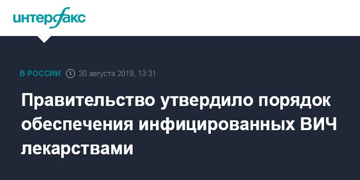 Москва. 30 августа. INTERFAX.RU - Правительство РФ утвердило положение об организации обеспечения инфицированных ВИЧ, в том числе в сочетании с вирусами гепатитов В и С, антивирусными лекарственными препаратами.