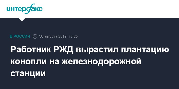 Москва. 30 августа. INTERFAX.RU - Плантация конопли обнаружена на одной из железнодорожных станций в Краснодарском крае. Ее возделывал работник РЖД, отвечающий за ремонт путей, сообщила пресс-служба управления на транспорте МВД России по Южному федеральному округу 30 августа.