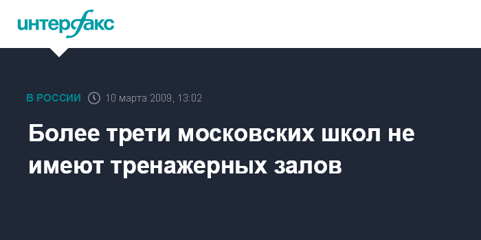 Москва. 10 марта. INTERFAX.RU - В Москве 33% школ не имеют тренажерных залов, сообщила руководитель столичного департамента образования Ольга Ларионова на заседании городского правительства во вторник.