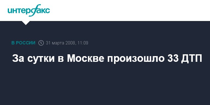 Москва. 31 марта. INTERFAX.RU - За прошедшие сутки в Москве зарегистрировано 33 дорожно-транспортных происшествия, в которых один человек погиб и 42, в том числе 5 детей, получили травмы, сообщили в понедельник "Интерфаксу" в управлении ГИБДД столицы.
