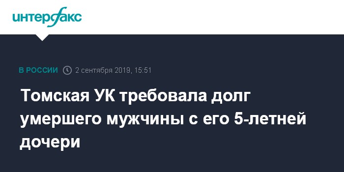 Томская УК требовала долг умершего мужчины с его 5-летней дочери