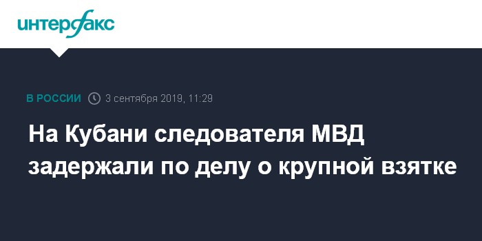 Москва. 3 сентября. INTERFAX.RU - Уголовное дело о получении крупной взятки через посредника возбуждено в отношении врио начальника одного из отделов Следственного управления МВД России по Краснодару. Об этом сообщил "Интерфаксу" информированный источник во вторник, 3 сентября.
