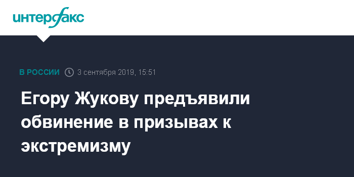 Москва. 3 сентября. INTERFAX.RU - Студенту-политологу Высшей школы экономики Егору Жукову предъявили обвинение в публичных призывах к экстремизму через интернет, ( ч. 2 ст. 280 Уголовного кодекса), сообщил его адвокат Леонид Соловьев. Его процитировал глава "Агоры" Павел Чиков. По его сведениям, с Жуковым проводят следственные действия.