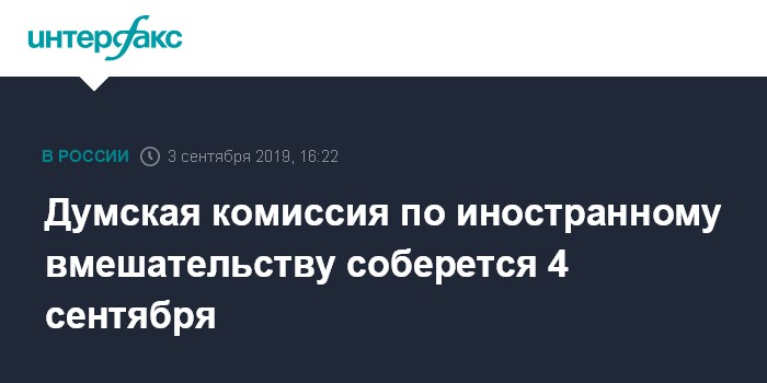 Совет Думы создал эту комиссию 19 августа после акций в Москве в поддержку свободных выборов и независимых кандидатов в Мосгордуму. Ранее аналогичная структура Совета Федерации объявила, что нашла признаки вмешательства в дела России, в частности, признаки вмешательства США в выборы в Мосгордуму.