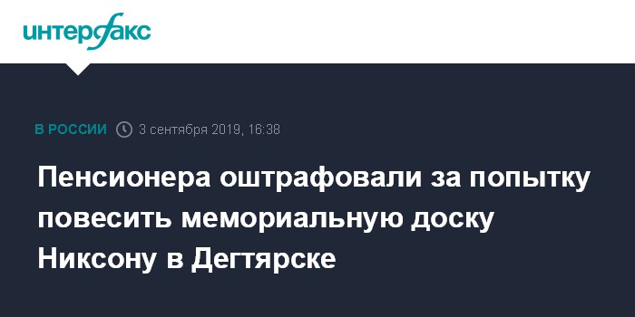 Пенсионера оштрафовали за попытку повесить мемориальную доску Никсону в Дегтярске