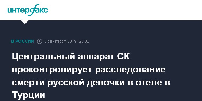 Москва. 3 сентября. INTERFAX.RU - Председатель Следственного комитета РФ Александр Бастрыкин поставил на контроль в центральном аппарате ведомства ход расследования уголовного дела по факту смерти двенадцатилетней россиянки в отеле в турецком Бодруме.