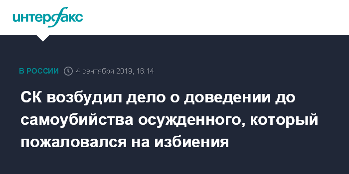 СК возбудил дело о доведении до самоубийства осужденного, который пожаловался на избиения