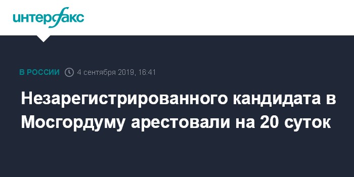 Незарегистрированного кандидата в Мосгордуму арестовали на 20 суток