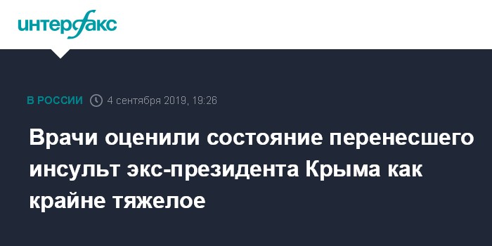 Врачи оценили состояние перенесшего инсульт экс-президента Крыма как крайне тяжелое