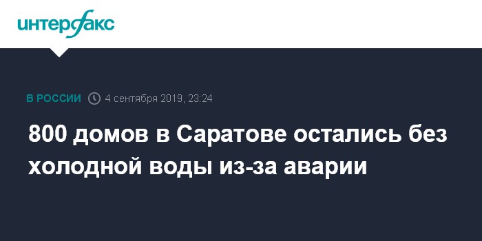 Москва. 4 сентября. INTERFAX.RU - Жители 826 жилых домов в Волжском районе Саратова до утра остались без холодной воды из-за повреждения на городском водопроводе, сообщил "Интерфаксу" заместитель главы города Максим Сиденко в среду.