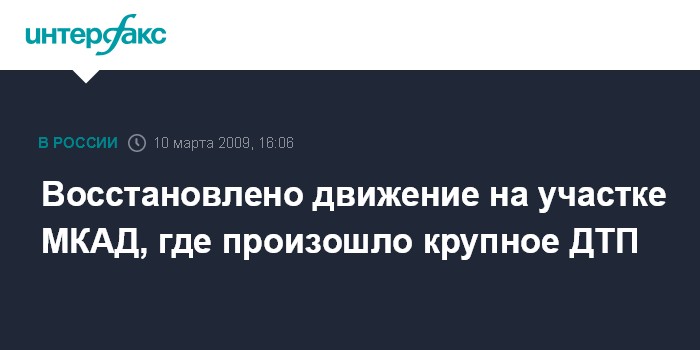 Москва. 10 марта. INTERFAX.RU - Движение автотранспорта в районе 30-го км Московской кольцевой автодороги, где во вторник произошло крупное ДТП с участием нескольких автомобилей, восстановлено, сообщили "Интерфаксу" в ГИБДД столицы. Там рассказали, что пострадавшие автомобили убрали к обочине примерно в 15:00, после чего движение было восстановлено в полном объеме. К этому же времени с проезжей части был убран и упавший фонарный столб.
