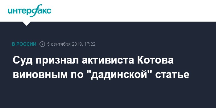 Указанная статья получила известность как "дадинская" - по имени оппозиционного активиста Ильдара Дадина, ставшего первым осужденным по ней. Накануне, 4 сентября, в ходе прений гособвинение попросило приговорить Котова к 4,5 годам лишения свободы в колонии общего режима.