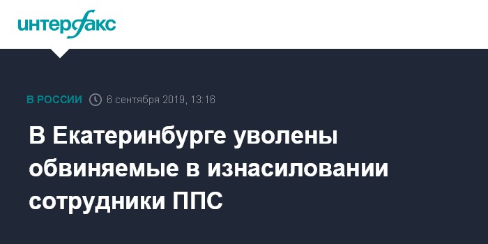Москва. 6 сентября. INTERFAX.RU - В Екатеринбурге из полиции уволили трех сотрудников патрульно-постовой службы, которых обвинили в изнасиловании девушки в служебном автомобиле. Об этом сообщил пресс-секретарь ГУ МВД Свердловской области Валерий Горелых.
