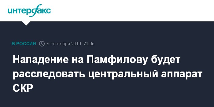 Москва. 6 сентября. INTERFAX.RU - Расследование уголовного дела о нападении на главу Центральной избирательной комиссии (ЦИК) России Эллу Памфилову будет передано из следствия МВД в центральный аппарат Следственного комитета России (СКР). Такое решение принял генеральный прокурор РФ Юрий Чайка,