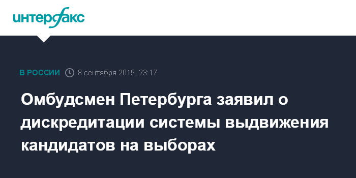 Омбудсмен Петербурга заявил о дискредитации системы выдвижения кандидатов на выборах