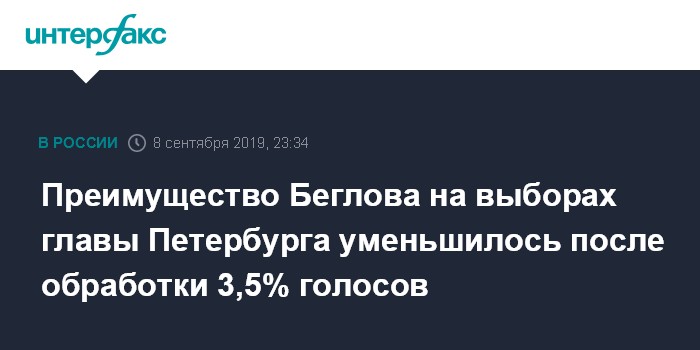 При этом, по первым данным обработки протоколов, на выборах губернатора Петербурга Беглов лидировал с 83,61% голосов.