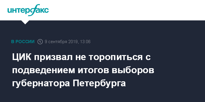 ЦИК призвал не торопиться с подведением итогов выборов губернатора Петербурга