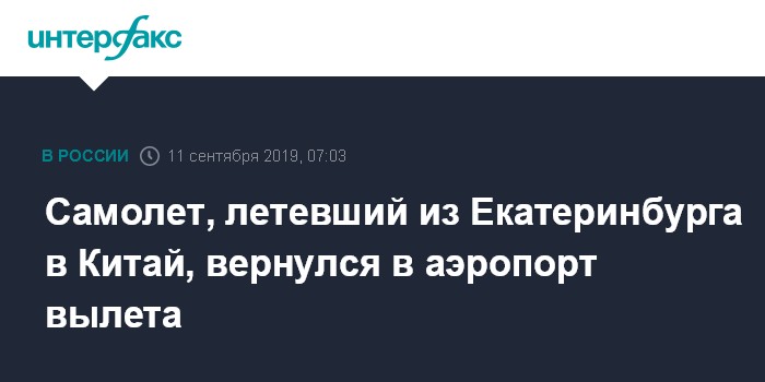 Самолет, летевший из Екатеринбурга в Китай, вернулся в аэропорт вылета