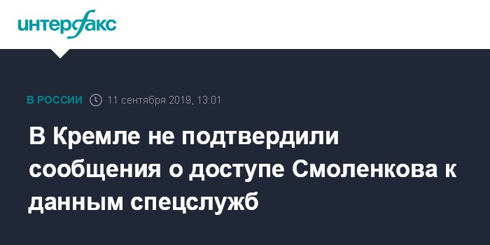 В Кремле не подтвердили сообщения о доступе Смоленкова к данным спецслужб