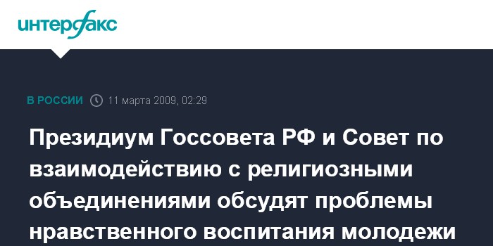 Президиум Госсовета РФ и Совет по взаимодействию с религиозными объединениями обсудят проблемы нравственного воспитания молодежи