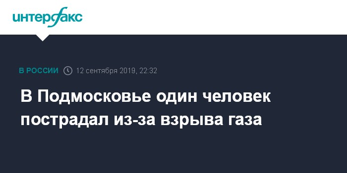 Москва. 12 сентября. INTERFAX.RU - Один человек пострадал в четверг в результате взрыва газа в девятиэтажном доме в Подмосковье, сообщил "Интерфаксу" информированный источник.