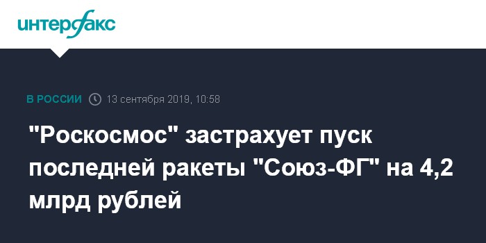 "Роскосмос" застрахует пуск последней ракеты "Союз-ФГ" на 4,2 млрд рублей
